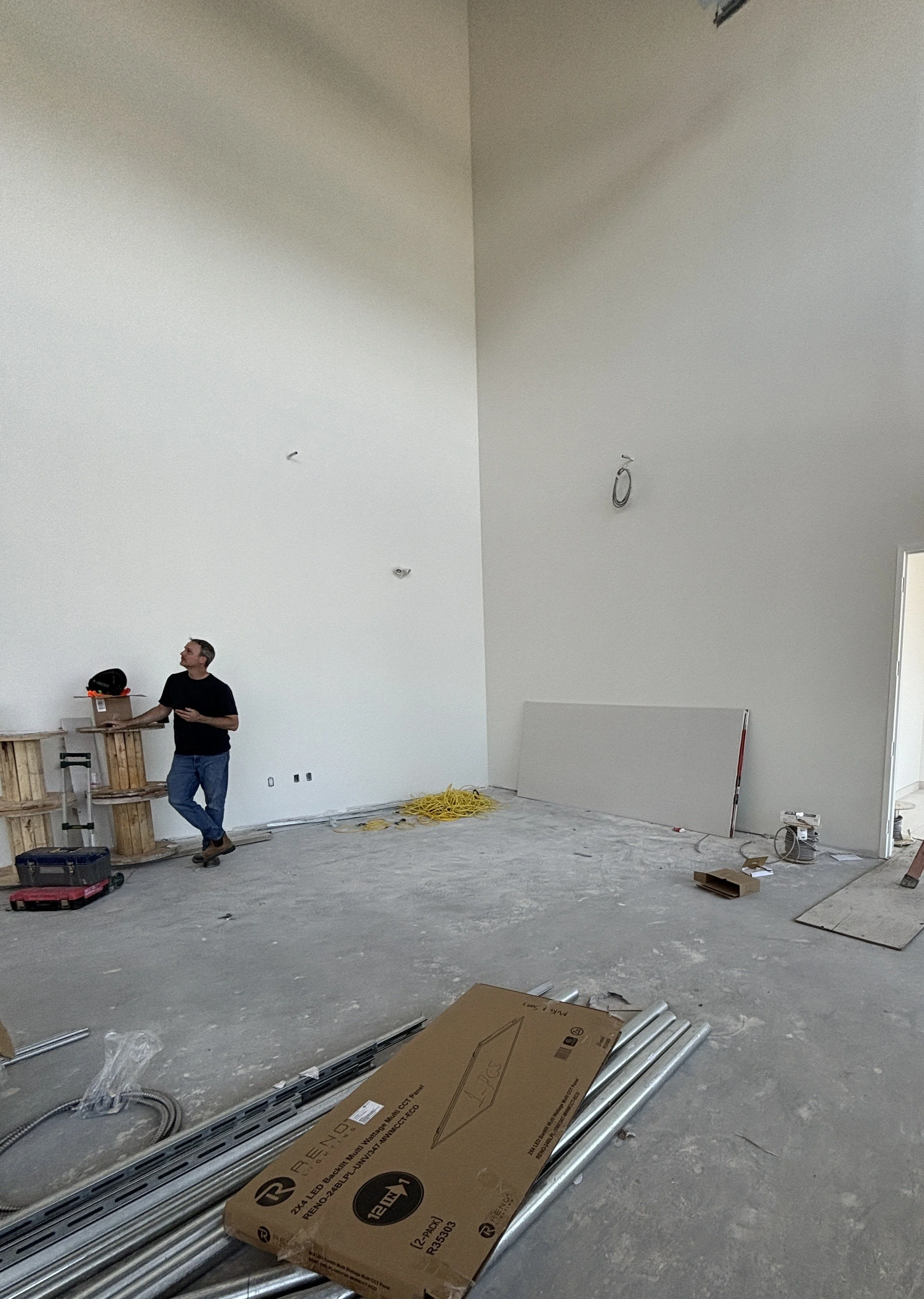 Since the unit was in a shell state, the project had a clean starting point. No demolition, no surprises, just a blank canvas. This allowed the contractor to jump straight into construction, which helped us make the most out of the tight timeline. The build itself was essentially split into two major components: construction and millwork. With so much on the final design hindering on custom millwork elements, coordination between the contractor and millworker was critical. They worked closely together to align schedules, manage deliveries, and ensure everything was installed in the right sequence. All of this had to happen while Breadsource's factory (located in the same building) was in full operation. It was important to keep noise and disruptions to a minimum, and the team did a great job ensuring the build did not interfere with the ongoing production next door.